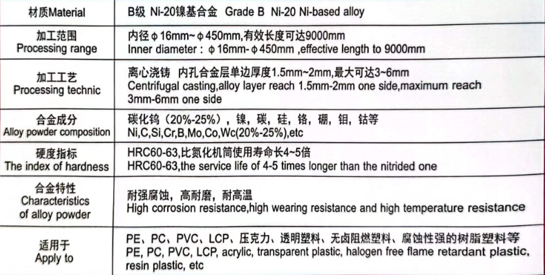 Bimetallic single screw barrel